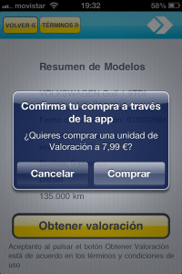 Para satisfacer esta necesidad, están empezando a surgir apps (como tengo un iPhone no puedo hablar nada más que de Apple, pero si algún lector conoce aplicaciones para Android se le agradecerá su aportación) que tratan de dar estos servicios de tasación de vehículos de segunda mano. Lamentablemente he de decir que he probado todas las que están disponibles en la AppStore, y ninguna de ellas cumple con las expectativas mínimas.