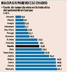 En referencia al tan manido tema de la productividad y la flexibilidad laboral, los técnicos de PwC parecen olvidar que el sector ya es mucho más flexible y productivo que en cualquier otro país europeo. Por mucho que aseguren que España no debería ser un país de bajo coste, parece que lo que pretenden es inspirarse en modelos como el de Bangladesh o el de China, en donde se trabaja 16 horas diarias, sin fines de semana ni vacaciones, por un sueldo de miseria. De hecho, en un gráfico publicado por Expansión, podemos ver que el coste de la mano de obra de la industria española es mucho más bajo que el de baluartes europeos como Alemania, Francia o Italia, y está muy cerca —aunque algo por encima— de los costes de Gran Bretaña.