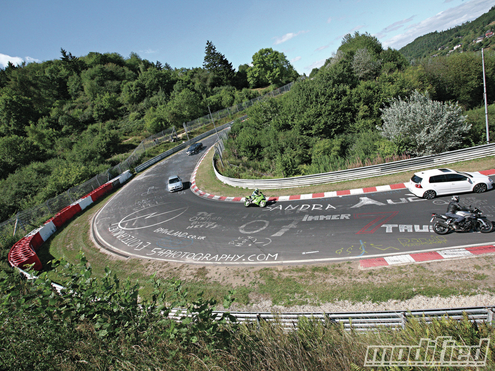 Un nuevo bache, una nueva rampa hacia arriba, antes de que la pista gire a la izquierda. Entro en la curva como puedo, como Dios me da a entender. Aquí de muy poco sirven los briefings previos, las charlas, los consejos de los profesionales, la primera vuelta de reconocimiento. Vuelvo a sentir el vacío en mi estómago al ver cómo, tras una suave curva a la izquierda, la carretera se deja caer hacia una rampa muy pronunciada tras la cual se abre una nueva curva a la derecha. Tal vez me encuentre en la zona de Karusell o de Brünnchen, pero la verdad es que todo me parece igual y no hay nada que me sirva para identificar una parte concreta del circuito. Tomo la curva a más de 200 por hora y de nuevo vuelvo a sentir como el deportivo se descontrola sin que yo pueda hacer mucho…