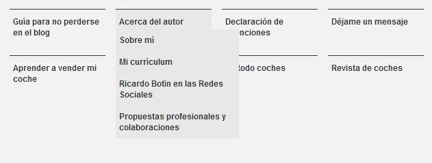 - Acerca del autor: si nos ponemos encima de esa pestaña, encontraremos un menú desplegable con las siguientes opciones: «Sobre mí», «Mi currículum», «Ricardo Botín en las Redes Sociales» y «Propuestas profesionales y colaboraciones».